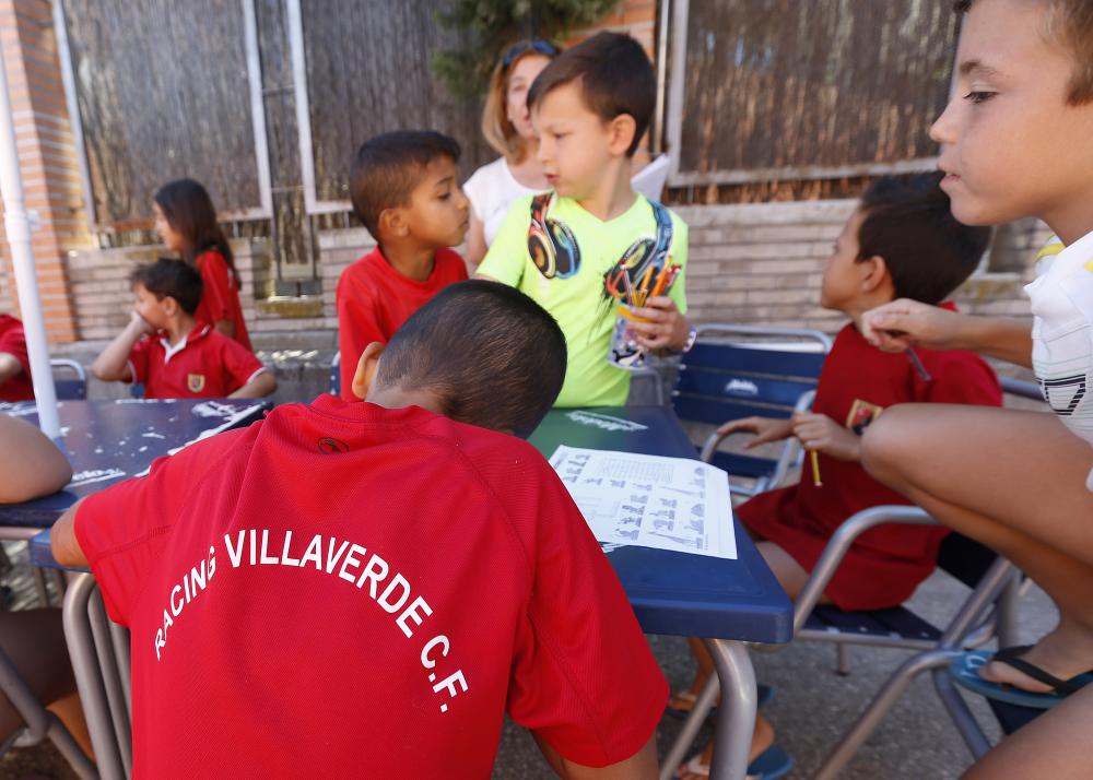 Pablo, Hugo, Jorge, Ángel, Daniel, Alba, Mario, Raúl, Darío, Diego, Joaquín, Sergio, Pablo, Manu, Paula, Lidia, David, Álvaro, Sergio, Adrián, Noel, Martín... Y a todos, a los 21 niños y niñas que han hecho posibles dos semanas inolvidables... ¡¡¡GRACIAS!!! Este viernes 15 de julio ha concluido en Perales del Río la II edición del Campus de Fútbol de Verano de la Escuela de Fútbol Racing Villaverde. Han sido dos semanas de fútbol entre amigos, desayunos divertidos, vídeos, clases de inglés, piscina y, sobre todo, mucha diversión y compañerismo. La Escuela quiere agradecer especialmente a Rafa, a Fernando y a Dani, los tres monitores que han estado con los chicos y chicas estos días, la labor que han llevado a cabo con un resultado por encima de todos: la sonrisa con la que salían todos los niños y niñas cuando tocaba poner fin al día. También, cómo no, a Olga, la profesora de inglés, cuya labor ha sido fantástica. Esperamos seguir creciendo y que el próximo verano podamos ser muchos más y podamos estar mucho más tiempo. Mientras tanto, recordad: Un barrio, un equipo, una ilusión. P.D.: Papás, mamás, no os perdáis la fotogalería que acompaña esta noticia. Las fotografías están realizadas por Pablo García, fotógrafo profesional del diario 'Marca'.